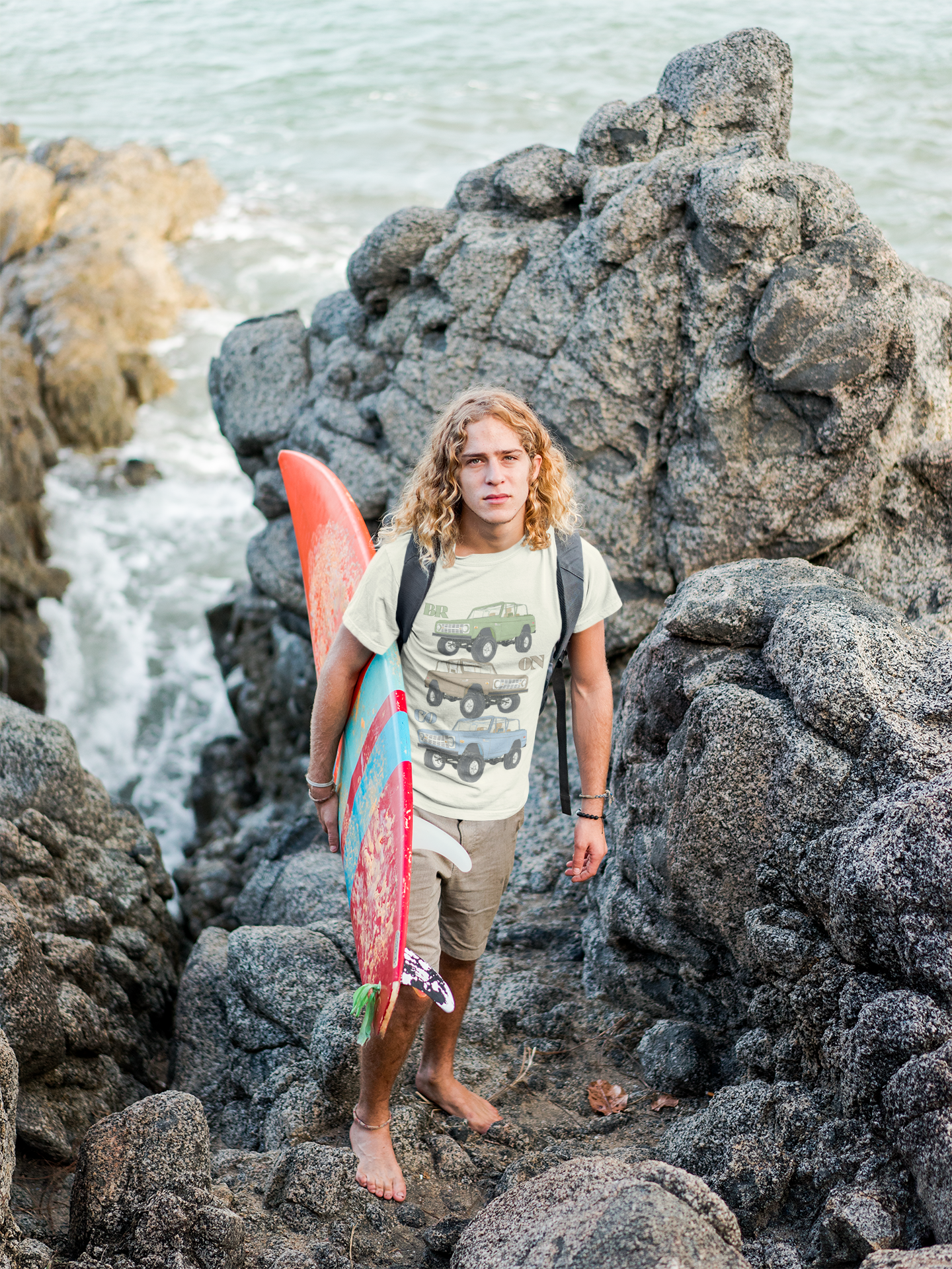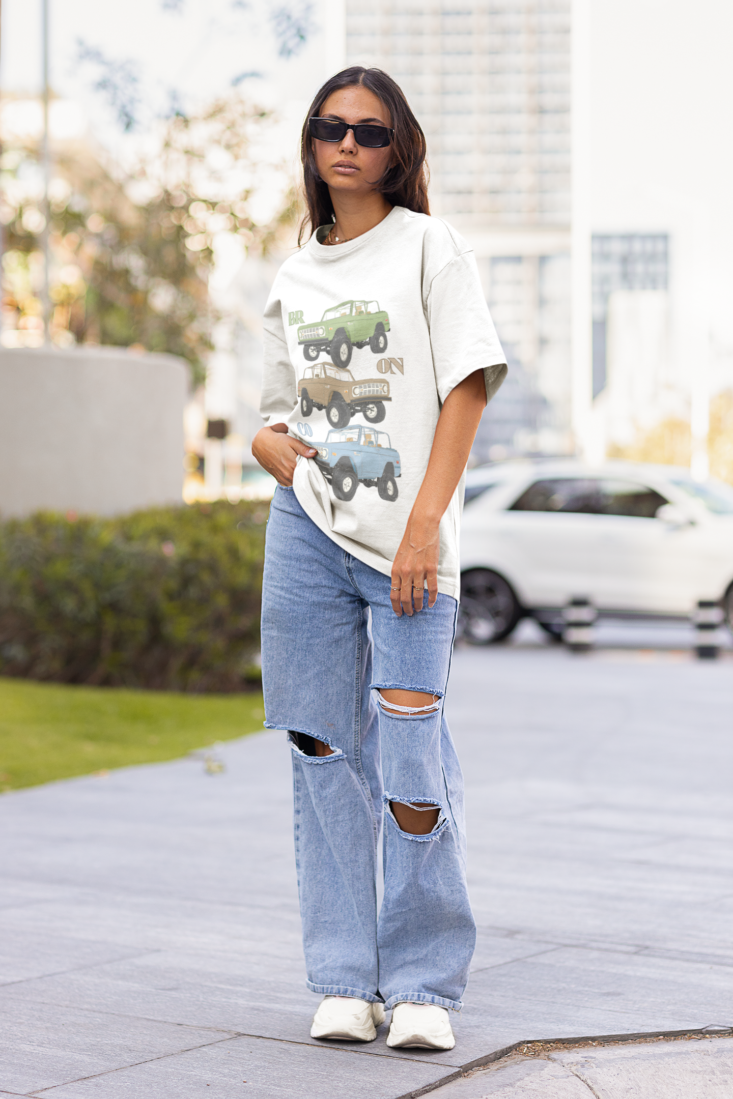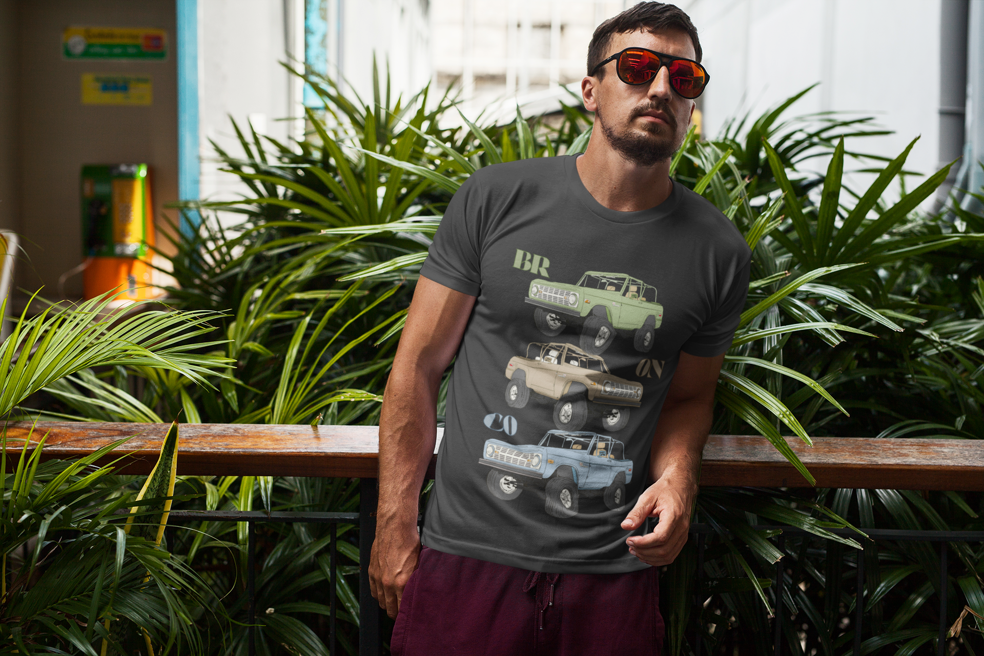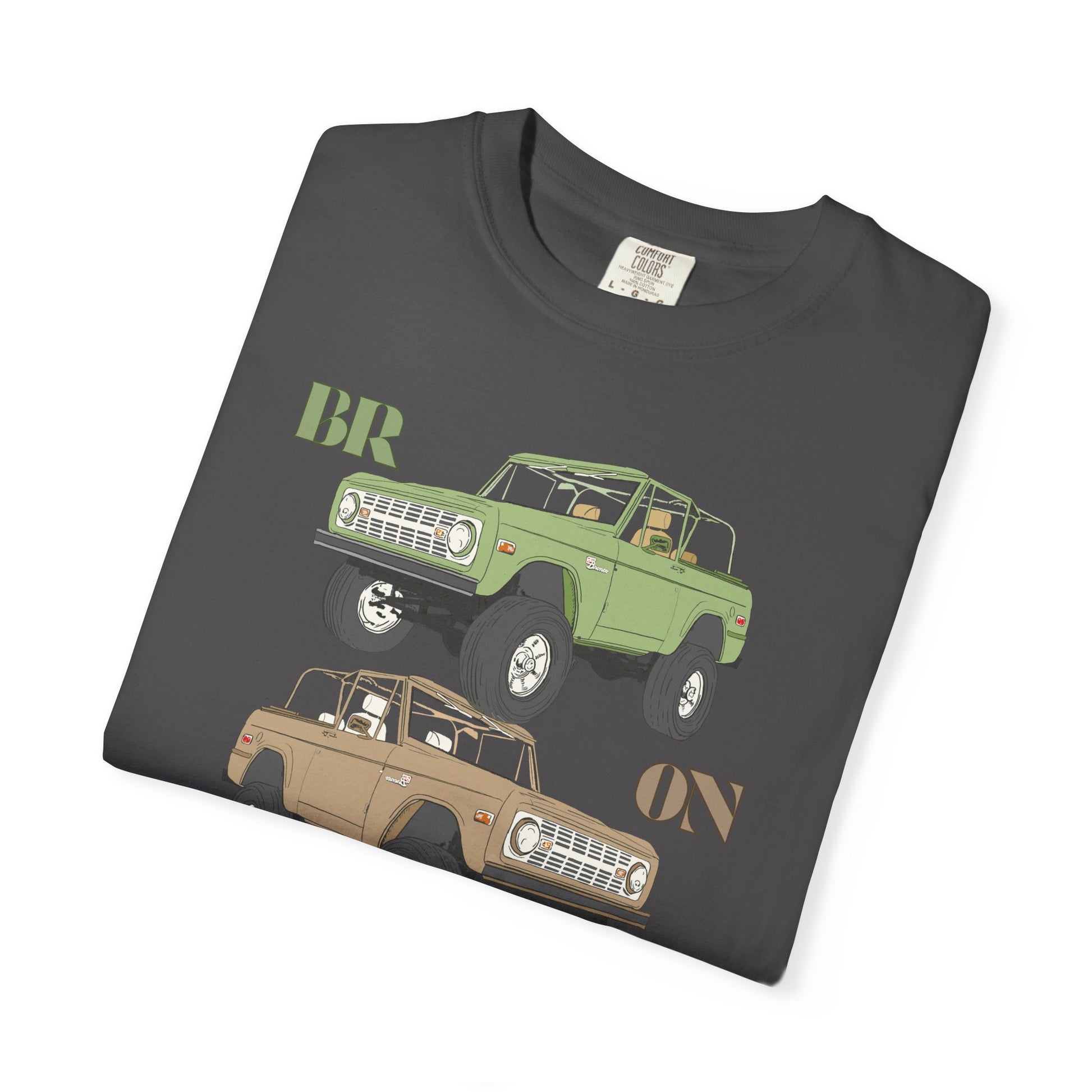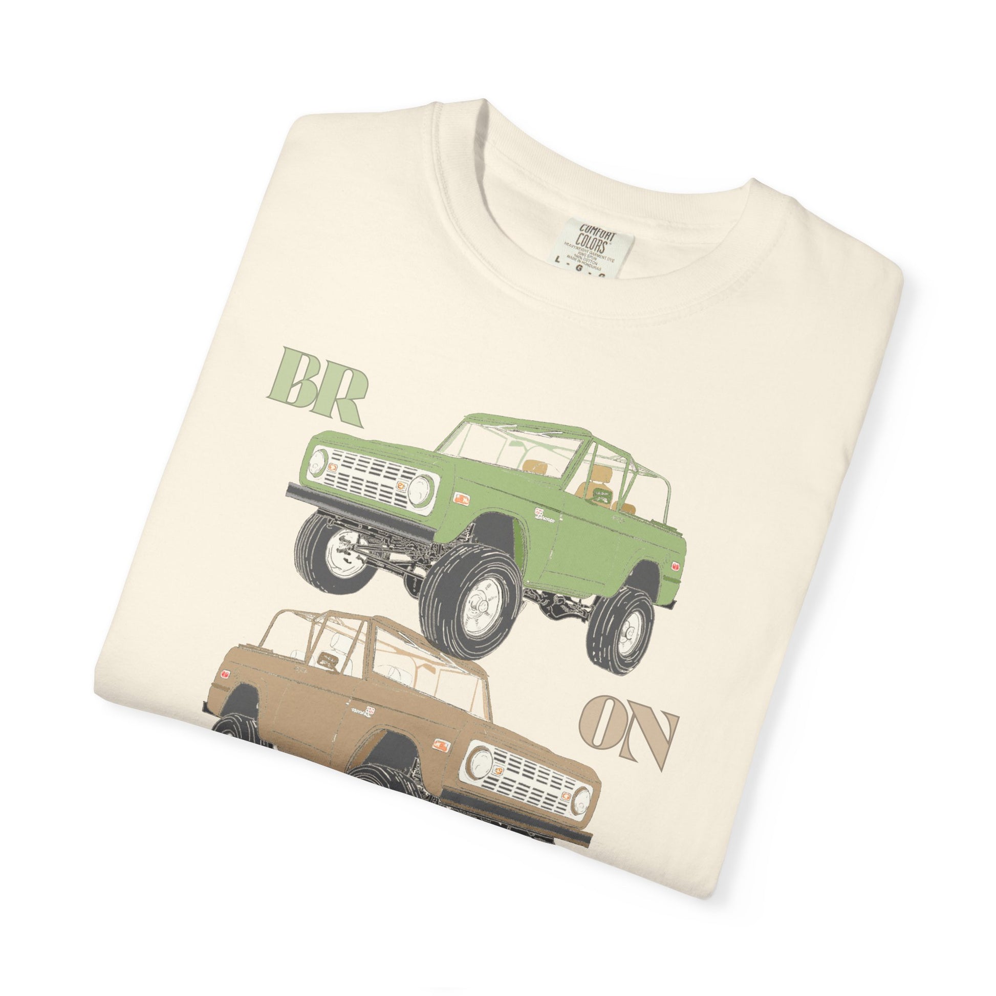 Classic rides, bold style, and a nod to rugged adventure — the Bronco Trio tee is made for anyone who loves vintage wheels and open roads. Featuring three hand-drawn Ford Broncos stacked in iconic colors — earthy green, desert tan, and sky blue — this design blends retro flair with timeless off-road energy. Each Bronco is detailed with lifted suspension, rugged tires, and open-top freedom, reminding you of a time when every drive felt like an exploration.
