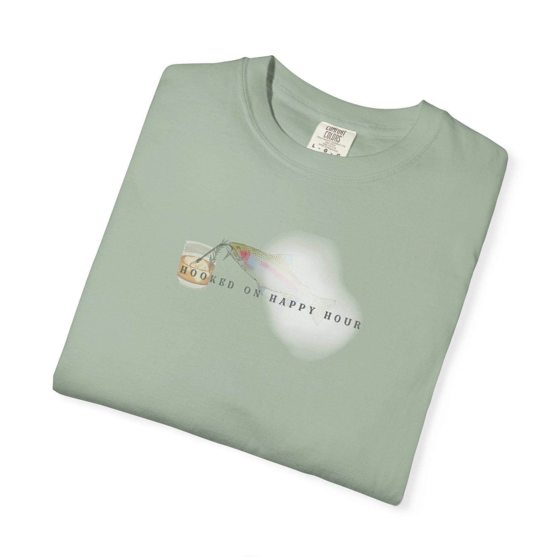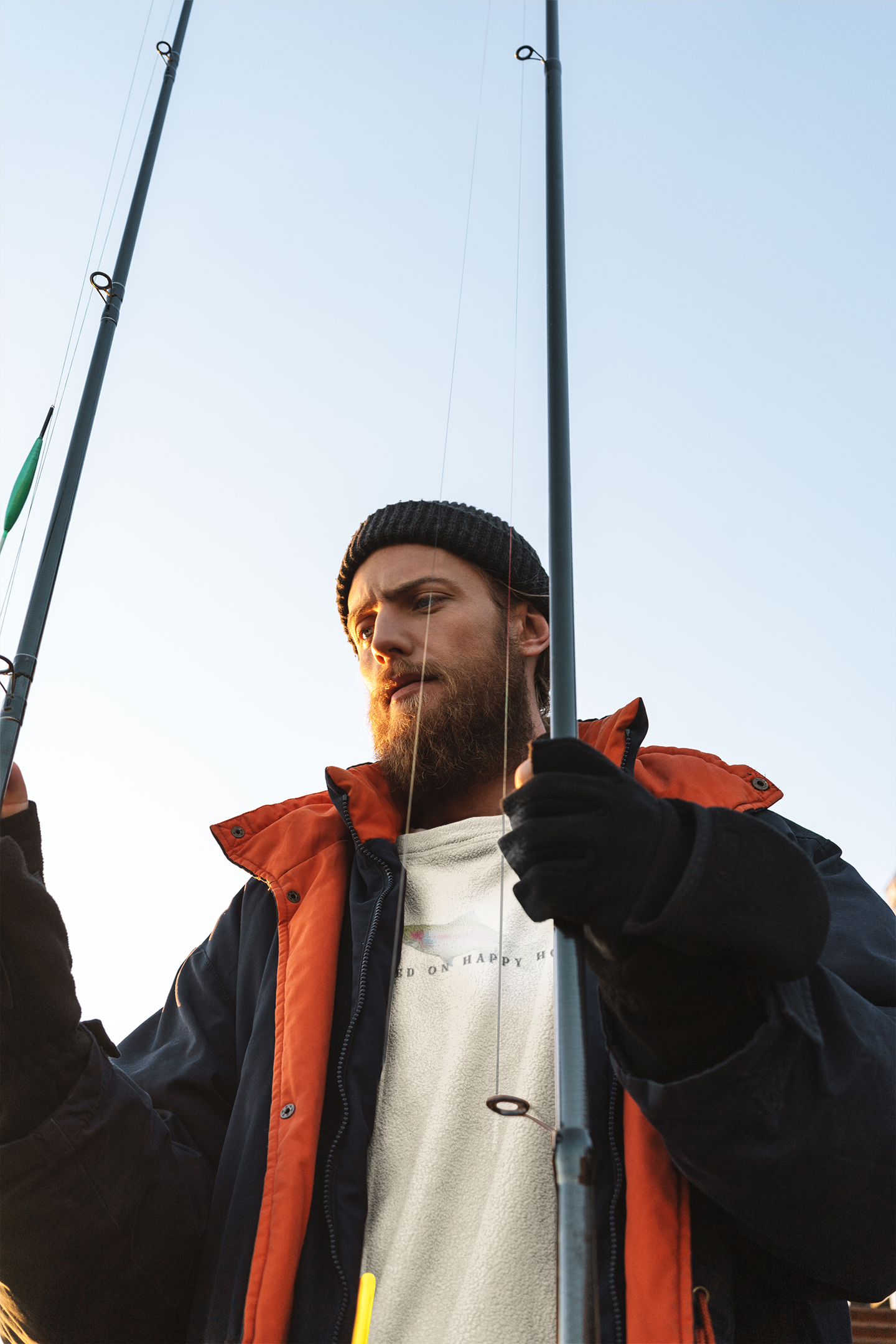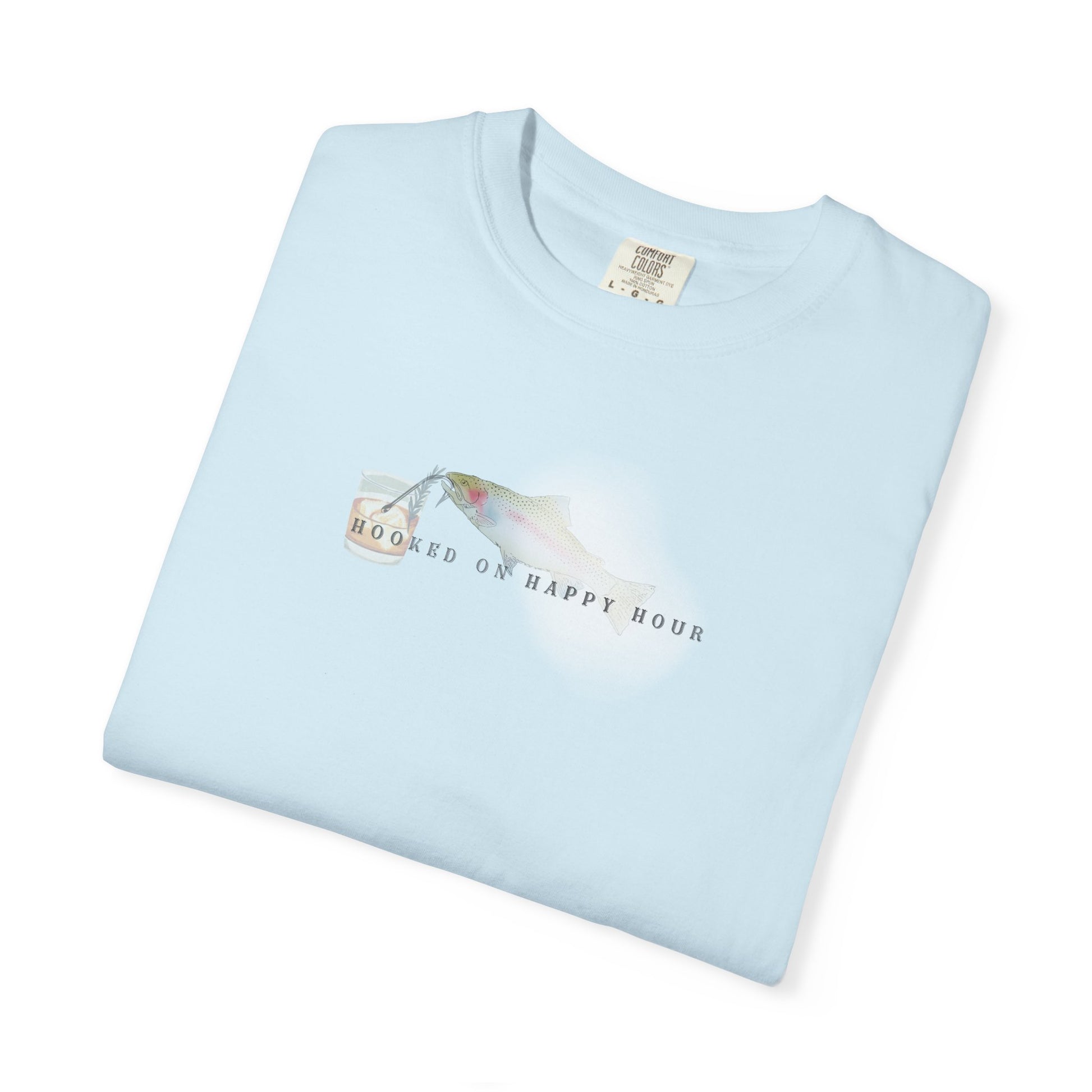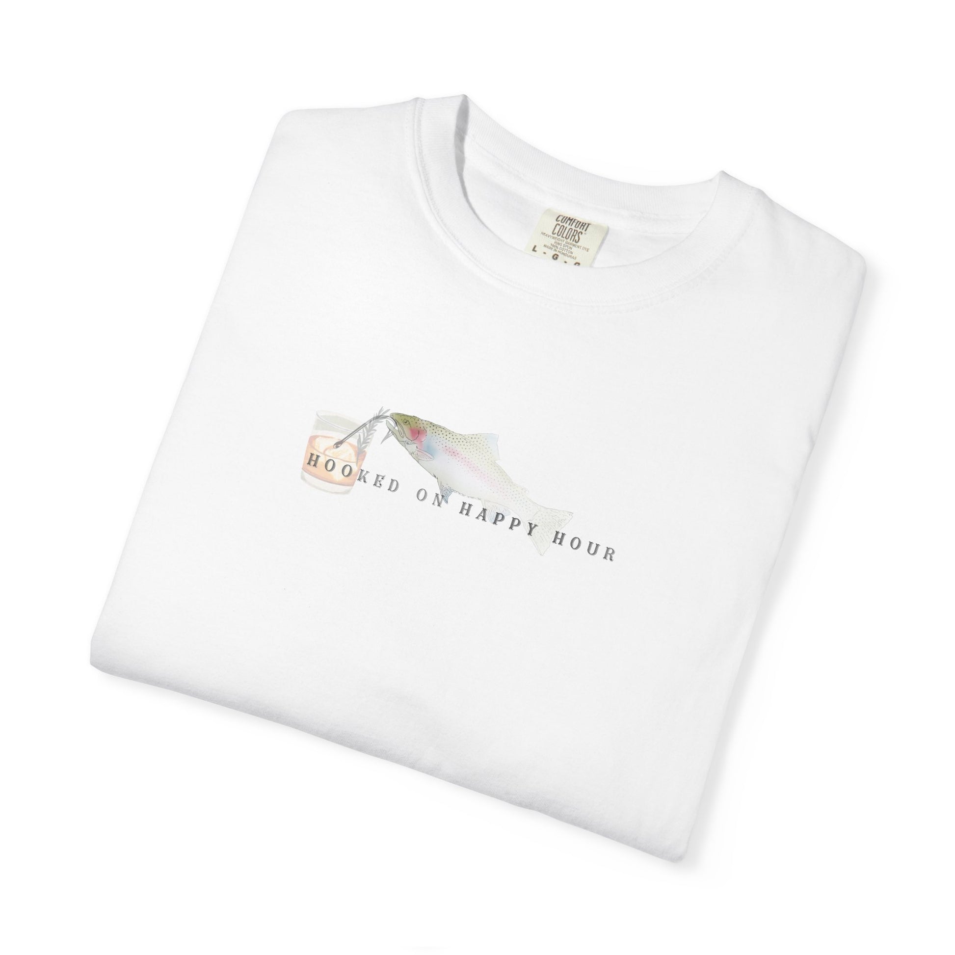 A shirt that blends the love of fishing, the outdoors, and a well-earned cocktail at the end of the day. On the front, a rainbow trout breaks the surface of misty waters, hooked onto a line that transforms into a straw dipping into a classic old fashioned. It’s a clever twist that captures the thrill of the catch and the joy of happy hour. On the back, the adventure continues—set against a dreamy tropical backdrop, a brook trout lounges in a hammock strung above turquoise waters, still tethered to the same old fashioned. The scene perfectly balances relaxation with the spirit of the outdoors. Printed on a premium, soft cotton tee, this design is ideal for anglers, adventurers, and anyone who knows the best stories are told over good drinks after a day outside.